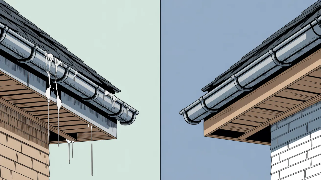 - Warning signs that require professional attention include gutter overflow, sagging sections, fascia discoloration, basement dampness or soil erosion, standing water, disconnected joints, and ice dam formation.